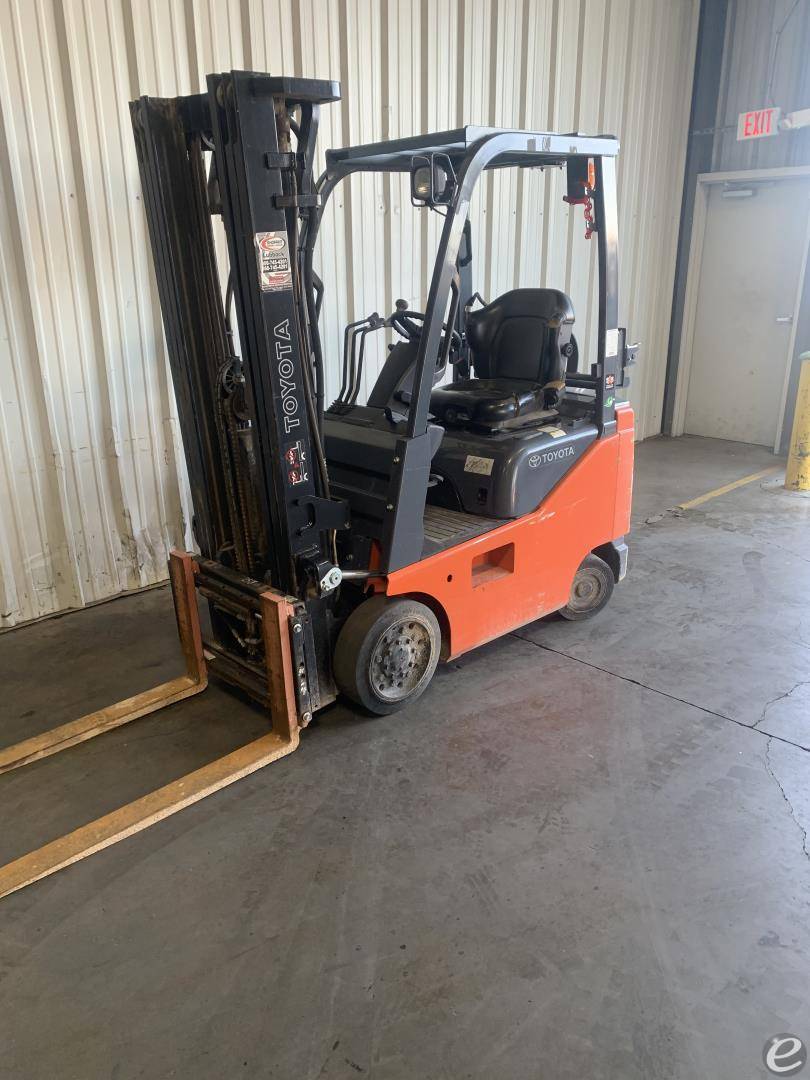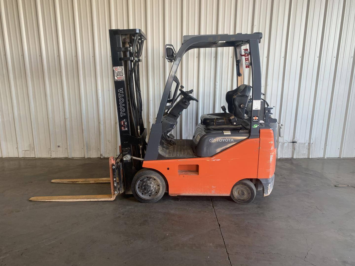 Equipment Description: General Information Manufacturer Toyota Model Number 8FGCU15 Type Forklift Engine Engine Type Toyota 4Y-ECS Engine Power 51 HP Fuel Type LPG Liquid Petroleum Gas Cylinder Count 4 Displacement cubic inches Dimensions Overall Length inches with forks Overall Width 42 inches Overall Height 84 inches with overhead guard Wheelbase 57 inches Load Handling Load Capacity lbs Load Center 24 inches Fork Length Varies Tires Tire Type Cushion Front Tire Size 18 x 7-8 Rear Tire Size 16 xPerformance Travel Speed mph Lifting Speed Full Load feet min Lowering Speed Full Load 98 feet min Gradeability Full Load 25 Operational Capacities Fuel Tank Capacity 8 gallons Operating Weight lbs Other Features Operator Presence Sensing System OPSS Comfortable Operator Compartment LED Headlights and Rear Combo Lights