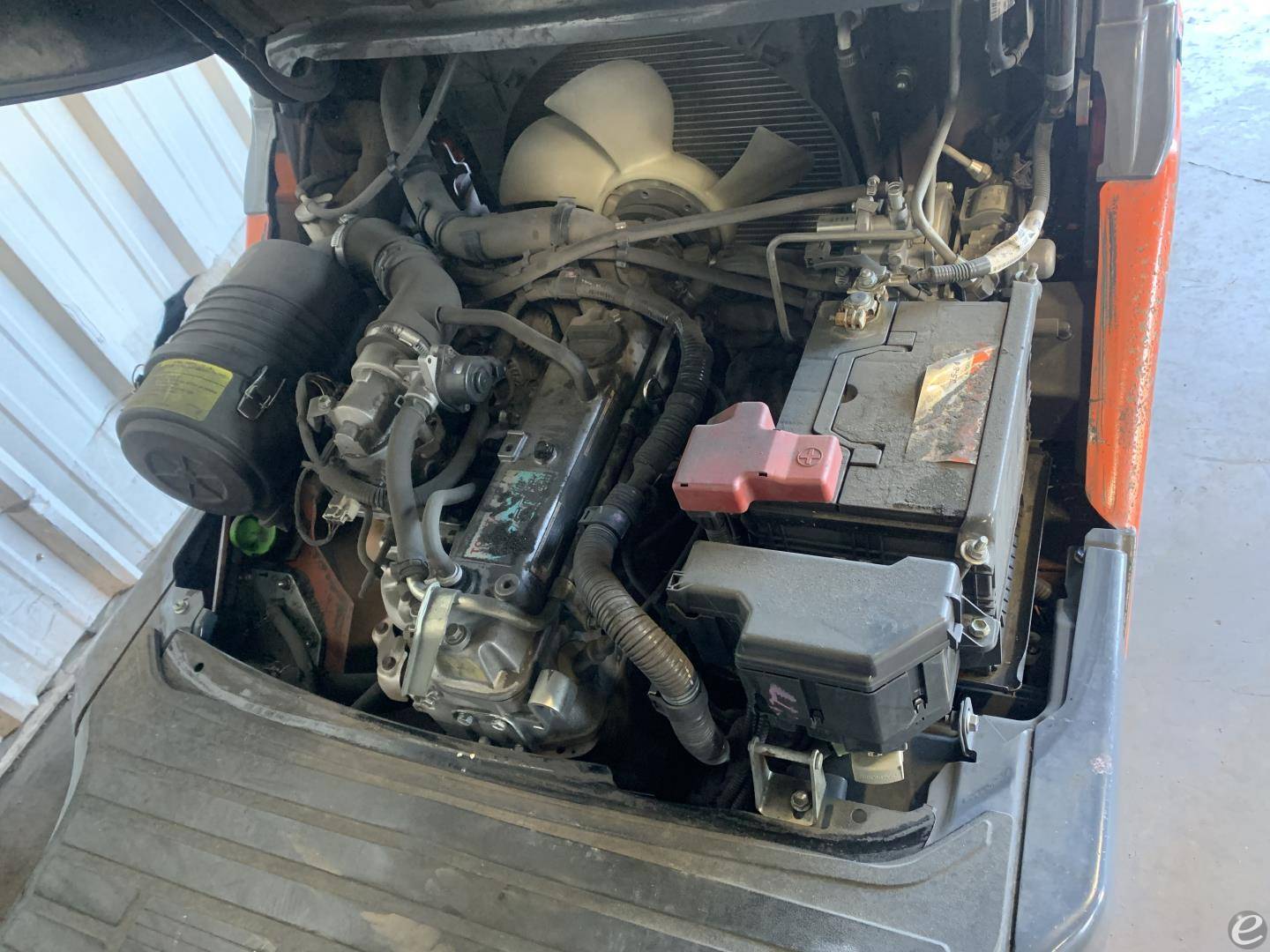 Equipment Description: Manufacturer Toyota Model Number 8FGCU25 General Specifications Power Type LPG Liquid Petroleum Gas Operator Position Sit-down Tire Type Cushion Number of Wheels 4 Dimensions Length to Face of Forks ft Overall Width Without Load 3 5 ft Height to Top of Overhead Guard 7 ft Turning Radius in Minimum Outside Turning Radius 5 5 ft Wheelbase ft Performance Rated Load Capacity lbs Load Center 24 in Travel Speed Loaded mph Travel Speed Unloaded mph Lifting Speed Loaded ft min Lifting Speed Unloaded ft min Lowering Speed Loaded 98 ft min Lowering Speed Unloaded 98 ft min Engine Specifications Engine Model Toyota 4Y Engine Type 4-cylinder water-cooled Displacement in Rated Power 51 hp RPM Torque 6 lbf ft RPM Weights Service Weight lbs Axle Loading Front lbs With Load Axle Loading Rear lbs With Load Wheel Specifications Front Tires 21x7x15 Rear Tires 16x5x10 Tread Front Rear 36 36 in Transmission Transmission Type Powershift Number of Speeds Forward Reverse 1 1 Brakes Service Brake Hydraulic Parking Brake Mechanical hand operated