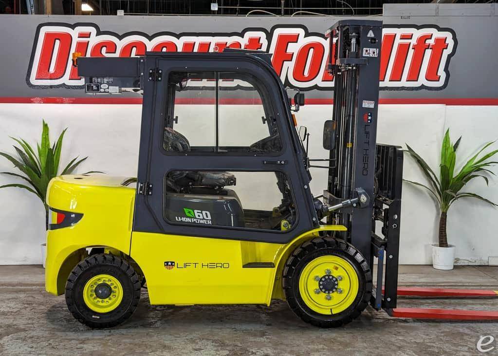 Equipment Description: Video https youtu be Fcl34IcdcYc Operators are dubbing LIFT HERO lifts the Tesla of forklifts thanks to our cutting-edge lithium-ion battery technology These batteries require no maintenance and allow for opportunity fast charging ensuring your lift can last an entire shift without interruption With completely sealed electrical components an 18-month or 2 000-hour factory warranty and a robust 5-year or 10 000-hour battery warranty you can count on efficiency and minimal downtime on the job site For added safety our forklifts are painted in bright luminous yellow with red-painted forks to enhance visibility Experience the revolution in material handling with LIFT HERO