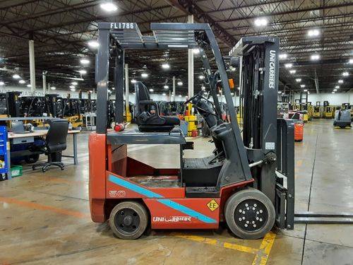 Equipment Description: Manufacturer Unicarriers Model Number BXC50N Type Electric Counterbalance Forklift Power Source Electric Battery Voltage 80V Drive Motor AC Motor Load Capacity lbs Load Center 24 inches Travel Speed laden unladen 8 1 8 7 mph Lifting Speed laden unladen 71 118 feet per minute Lowering Speed laden unladen 98 98 feet per minute Gradeability laden unladen 15 20 Length to Fork Face inches Overall Width 59 inches Overall Height cab 89 inches Fork Length Varies Turning Radius 96 inches Wheelbase 72 inches Ground Clearance under mast 5 inches Tire Type Cushion Front Tires 21 x 9 inches Rear Tires 16 x 6 inches Service Brake Hydraulic Wet Disk Parking Brake Mechanical Lever
