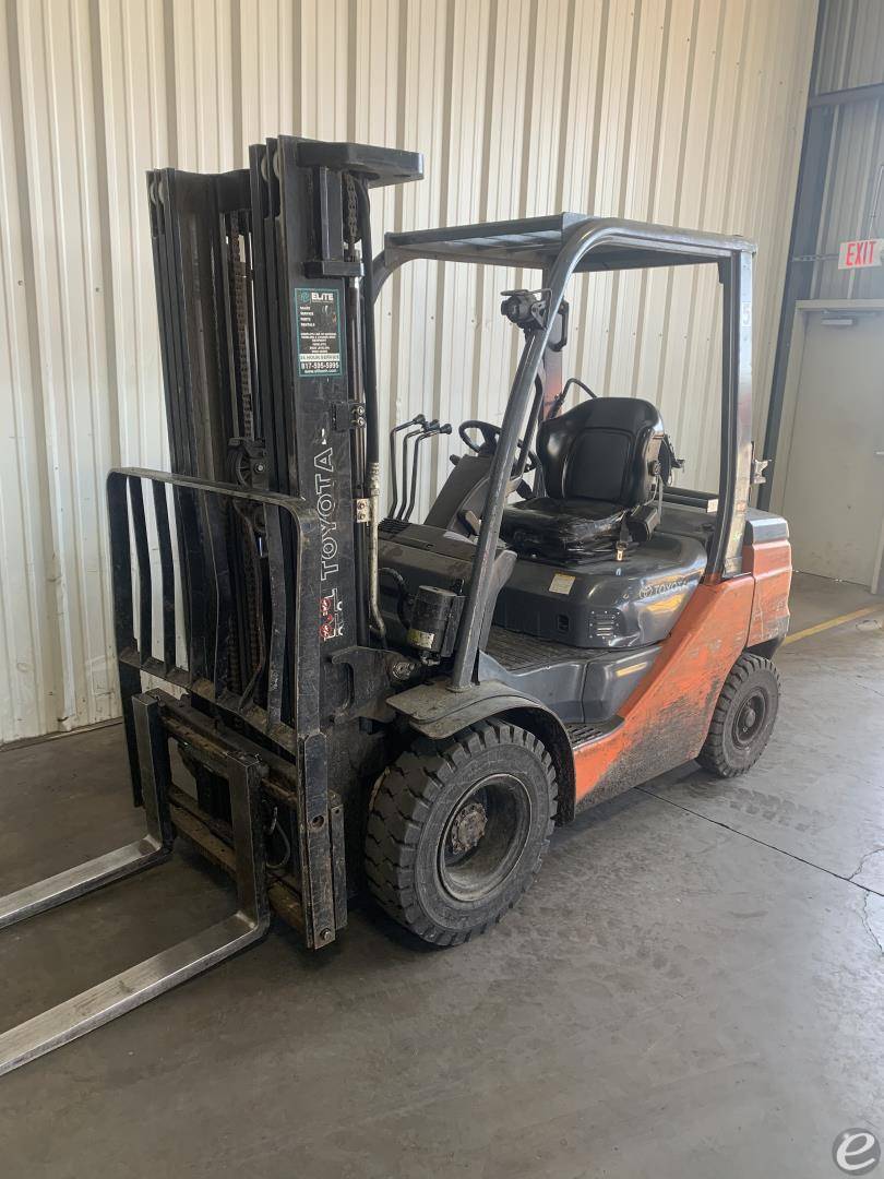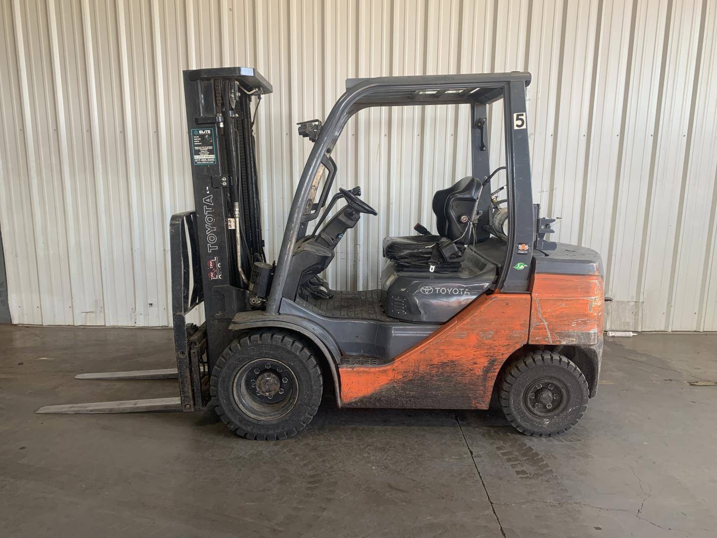 Equipment Description: General Information Model 8FGU25 Manufacturer Toyota Type Forklift Engine Engine Type Internal Combustion Fuel Type LPG Gasoline Engine Model Toyota 4Y Dimensions Overall Length approximatelyinches Overall Width approximately 45 inches Overall Height to top of overhead guard approximately 83 inches Wheelbase around 59 inches Weights Weight approximatelylbs Performance Load Capacity lbs Travel Speed unloaded approximately 11 mph Turning Radius approximately 87 inches Tires Tire Type Pneumatic Front Tires 7 00-12-12PR Rear Tires 6 00-9-10PR Brakes Service Brake Hydraulic Parking Brake Mechanical Lever Hydraulic System Auxiliary Hydraulic Flow varies Attachments Fork Length varies