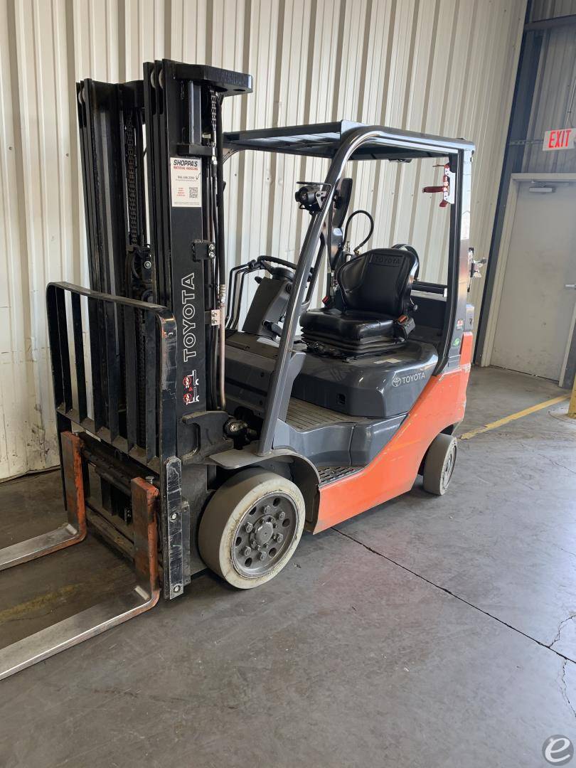 Equipment Description: General Specifications Model Number 50-8FGCU20 Manufacturer Toyota Type Forklift Subtype Cushion Tire 4 Wheel Sit Down Indoor Warehouse Fuel Type Used LP Gas Engine Engine Manufacturer Toyota Engine Type 4-cylinder Fuel System LPG Dimensions Overall Length inches Varies depending on fork length Overall Width inches Overall Height Cab inches Wheelbase inches Performance Load Capacity lbs Power Approximately 51 HP Travel Speed mph laden Gradeability Approximately 20 laden Turning Radius inches Wheels and Tires Tire Type Cushion Front Tire Size 18x7-8 Rear Tire Size 16x6-8 Operational Features Operator Position Sit Down Steering Power Steering Brake System Wet Disc Transmission Powershift