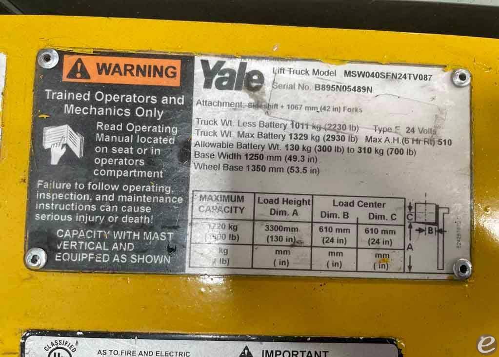 Equipment Description: Video https youtu be 76kuOnBwwZU si z0pqqaKuE8TUZNnw Always serviced and well maintained One of the original manufacturers Yale is one of the top brands in the material handling industry with over 80 years of experience