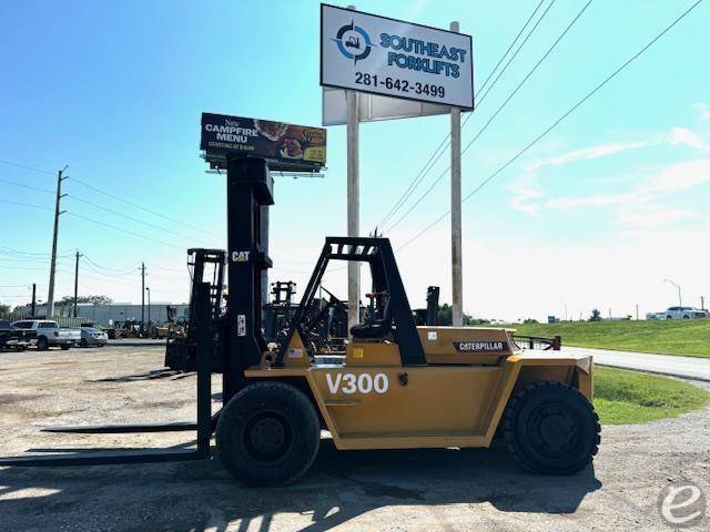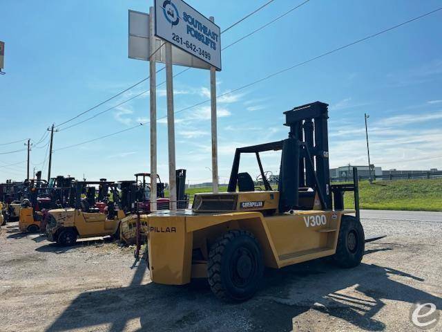 Description: Caterpillar V300 30 000 Capacity 96 Forks Plain Carriage Air Tires CatEngine Good Older Large Capacity Forklift No Computers