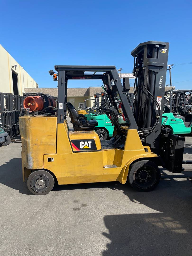 Equipment Description: Manufacturer Cat Model Number GC55KSTR Type Forklift Fuel Type LP Gas General Specifications Load Capacity lbs Wheelbase 80 inches Overall Length inches Overall Width 53 inches Overall Height Cab Approximatelyinches Engine Specifications Engine Type LPG Engine Power ApproximatelyHP Number of Cylinders 6 Performance Travel Speed Approximately 12 mph Lift Speed Approximatelyft min Turning Radius Approximatelyinches Gradeability 23 at full load Operational Data Operator Seat Ergonomic with adjustable position Steering Power steering with tiltable column Brakes Hydraulic brakes with auto-release parking brake Chassis Tires Cushion tires suitable for indoor use Tire Size Front Varies Tire Size Rear Varies Forks Fork Length Varies Fork Width 6 inches Fork Thickness 2 inches Additional Features Safety Features Integrated warning system with lights and alarms Instrumentation Multifunction LCD display Hydraulics Responsive hydraulic controls for enhanced maneuverability