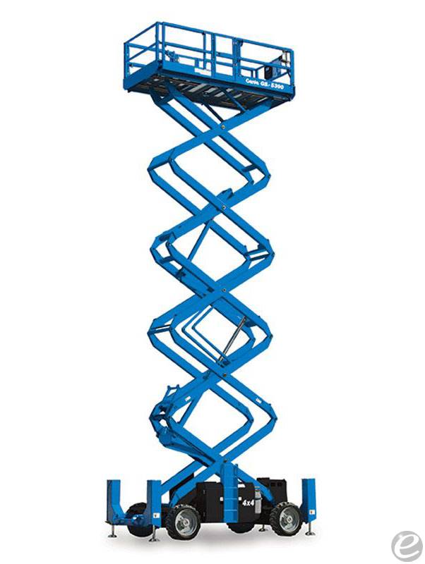 Equipment Description: New Genie GS-5390 Rough Terrain Scissor Lift with 60 hp -kW - Ford 2 5L - Gas LPG lb Lifting capacity Folding rails Full-height swing gate Slide out extension deck AC power to platform Diamond plate platform deck Dual LED beacon Lanyard attachment points platform control guard platform load sense system Rough Terrain foam-filled tires plus a beautiful finish STOCK PHOTOS OTHER SIZE OPTIONS AVAILABLE