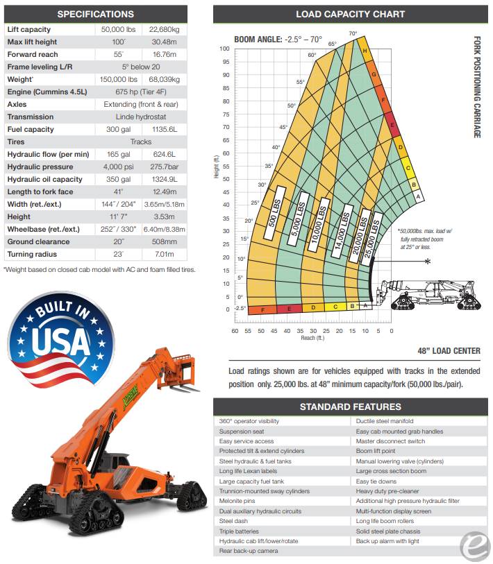 Equipment Description: New Xtreme TRACKZILLA XR50100-G withlb Capacity Less de-rate 100 of max lift height 55 of max forward reach Cummins 4 5L Diesel withhp - T4f Linde hydrostatic transmission 300gal Fuel tank standard tracks plus a beautiful finish STOCK PHOTOS OTHER OPTIONS AVAILABLE
