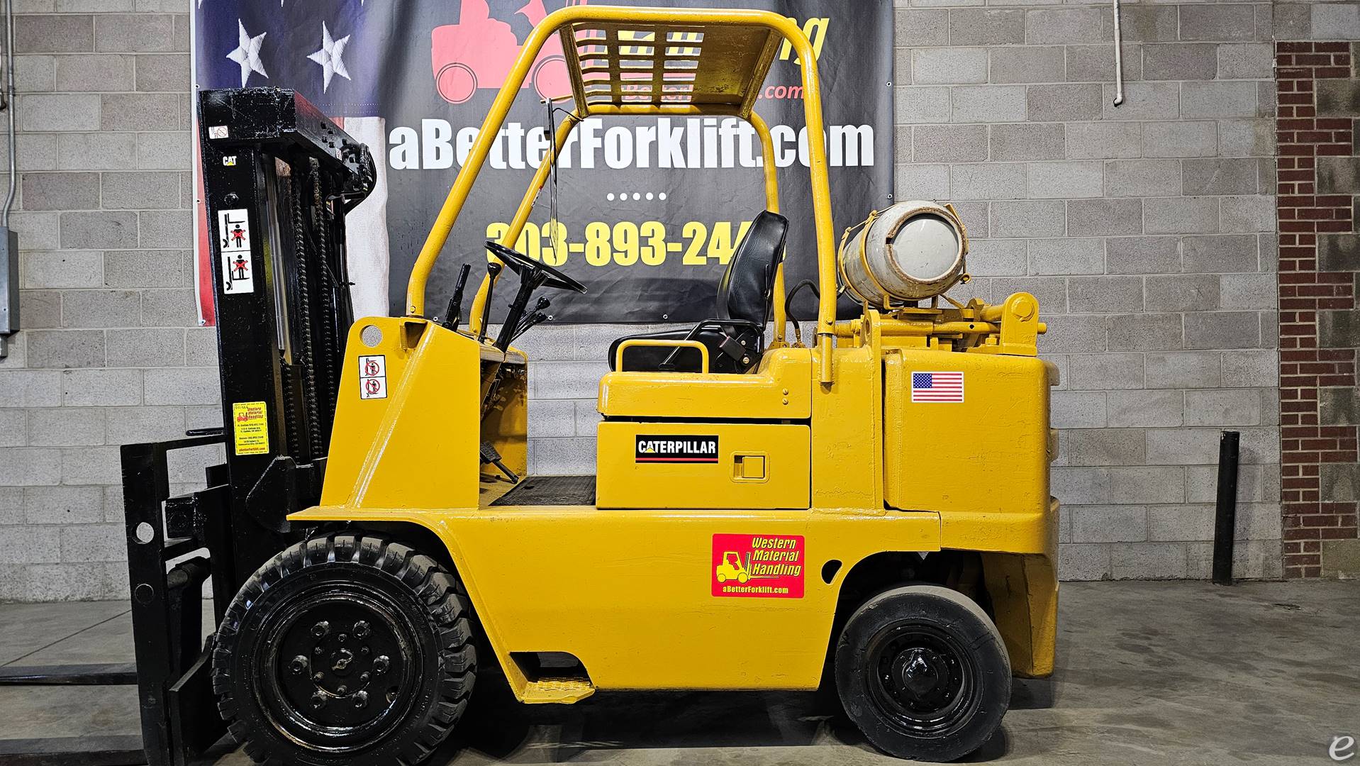 Equipment Description: D21336w Goodie but oldie CAT V60B 6K Pneumatic tire forklift with 178 triple stage mast side-shift carriage 48 pallet forks 6cyl LP gas engine automatic transmission tune up PM service and New Paint