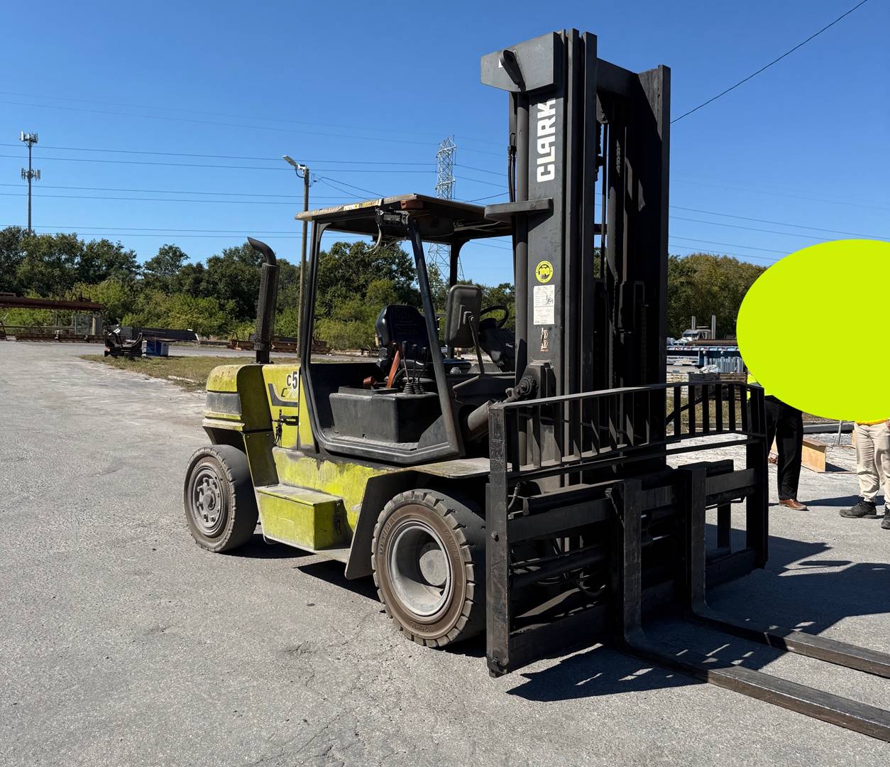 Equipment Description: Clarklb Capacity Pneumatic Forklift Now Available This machine comes with a three stage mast and fork positioners Over 20 Ft of Max Lift Height and an 80 Inch wide carriage 8 FT Forks Solid Pneumatic Tires This is a well maintained machine Serviced and Ready to Work Nationwide Delivery
